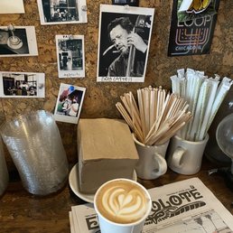 I got an iced latte with oat milk and cane syrup. my bestie got a sweetened iced matcha latte with oat milk. it was simply delicious rich coffee flavor in mine and authentic matcha taste in hers! The baristas were very nice as well and did a great job! :) It's very tiny inside but has great art and good vibes all around. I will be coming back!